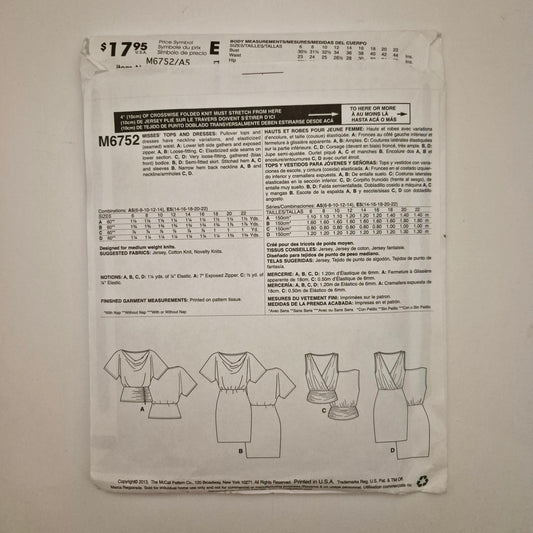 McCall's M6752, top and dress pattern, sizes 6 - 14