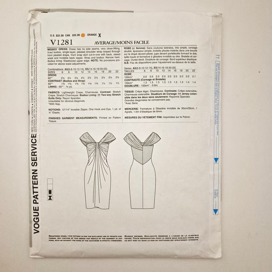 Vogue V1281 dress pattern. Sizes 6 - 14