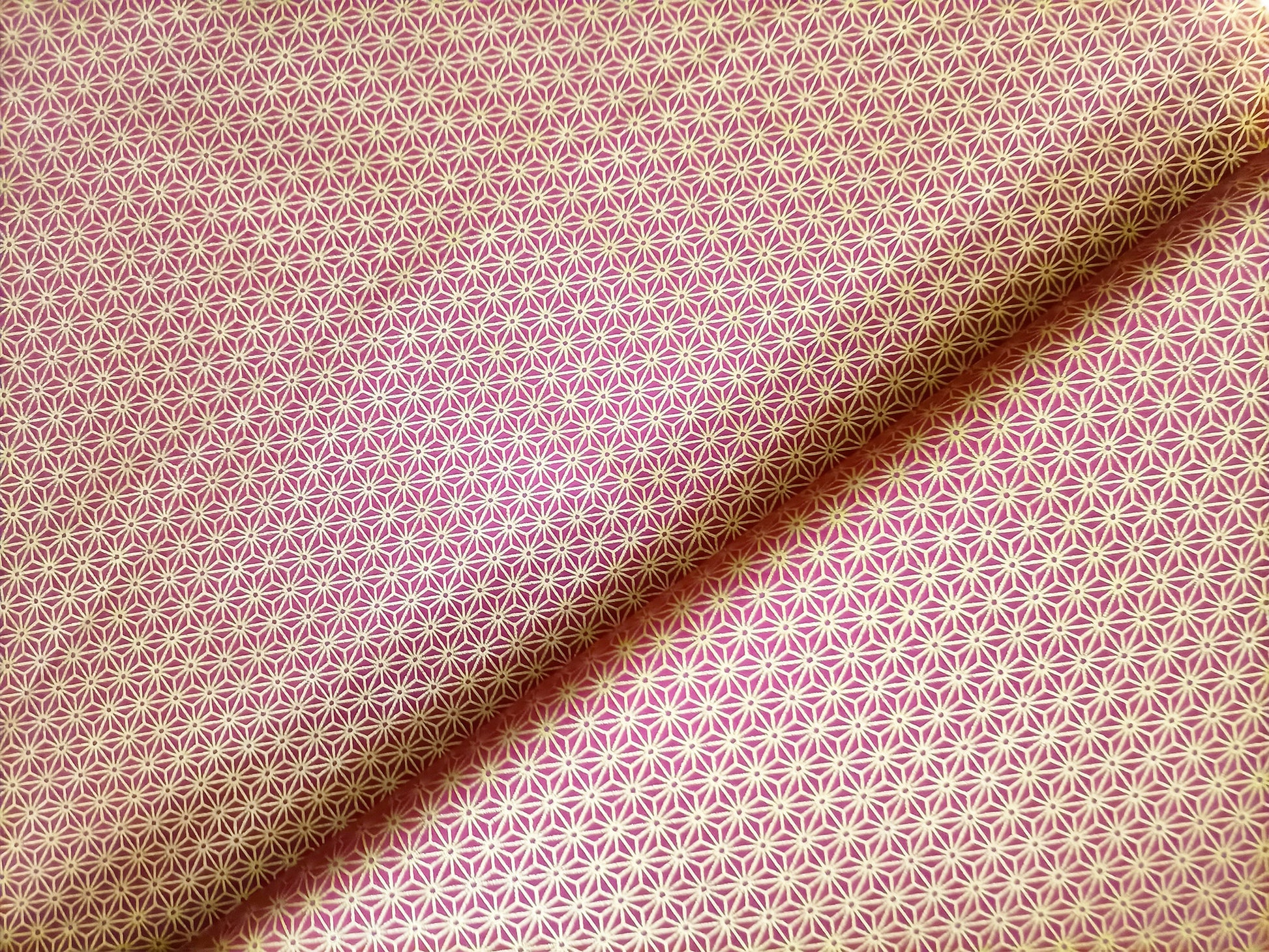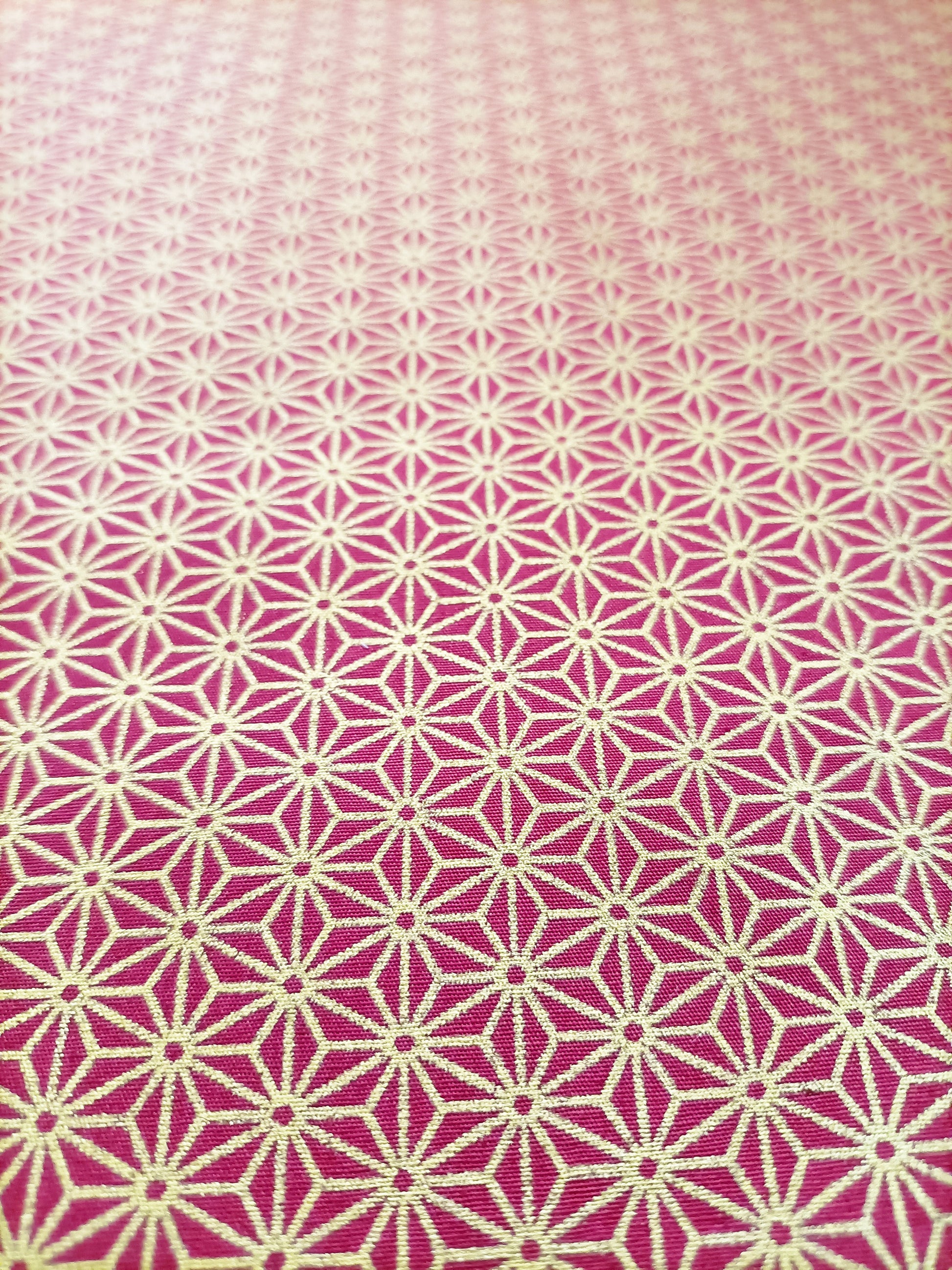 Gold linked star design on a bold red background. While it's not a specifically Christmas design, it definitely has a Christmas fabric feel to it.
