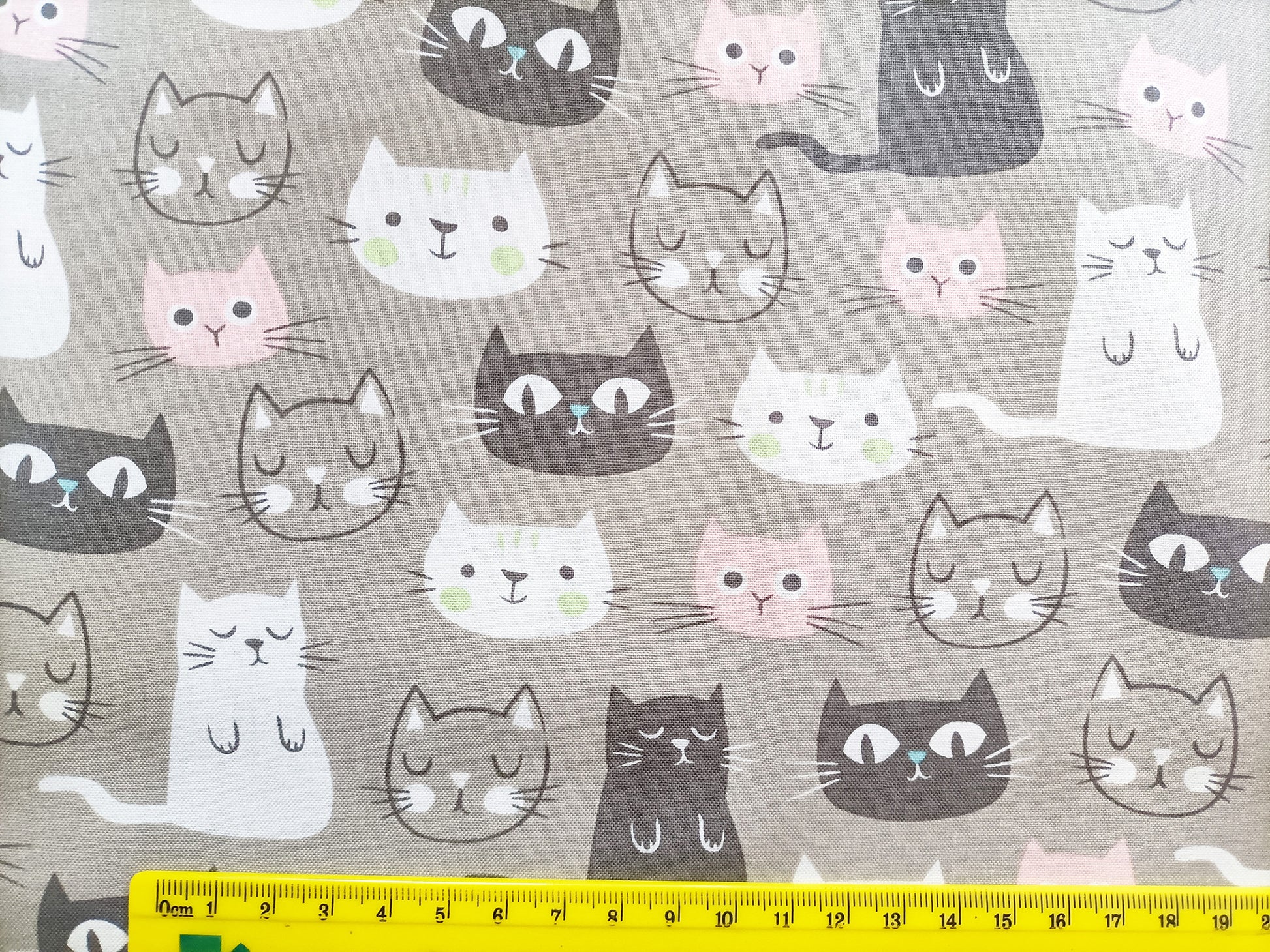 Fat Quarter - Purrfect Day Cats on Grey - My Mind's Eye - Riley Blake - Cotton Fabric