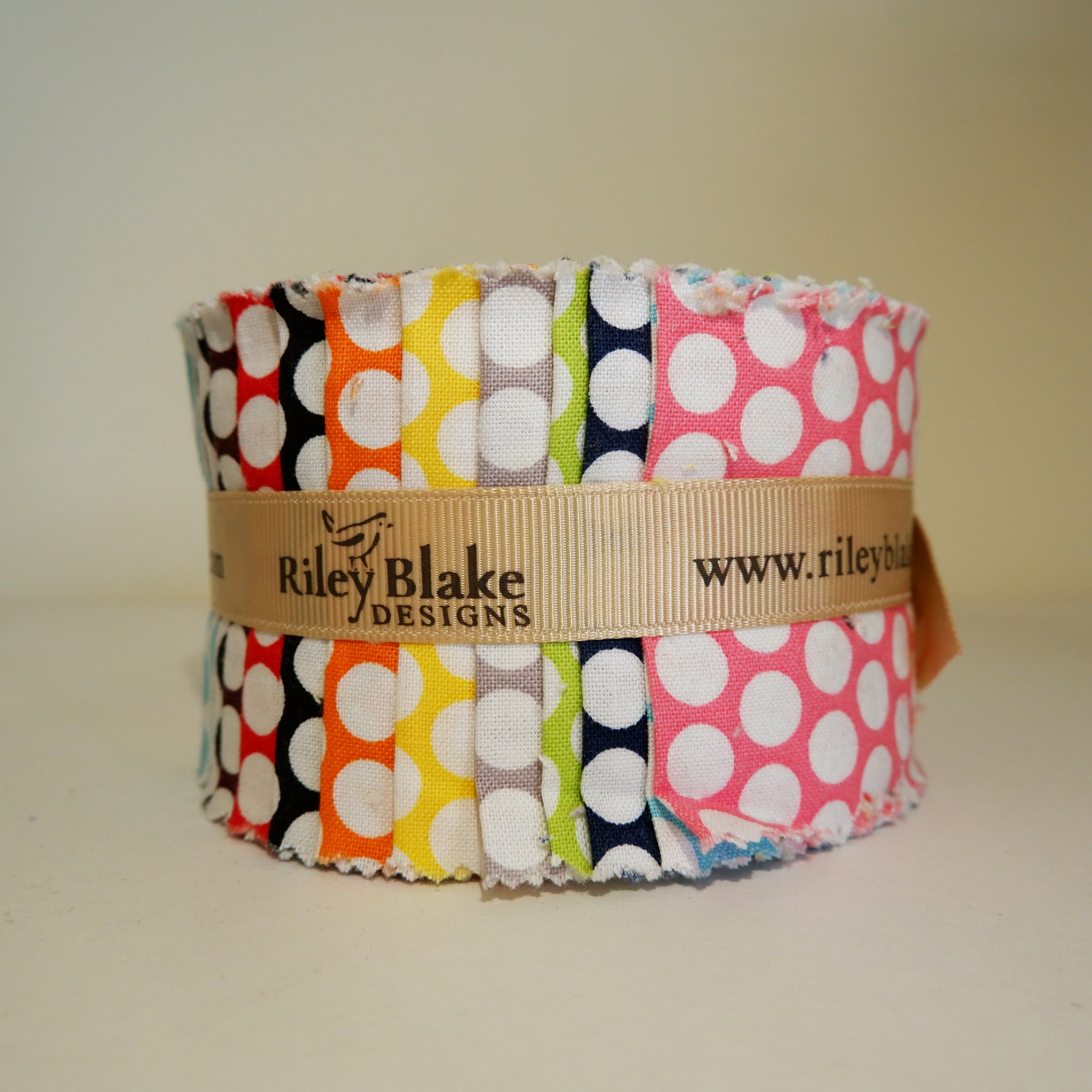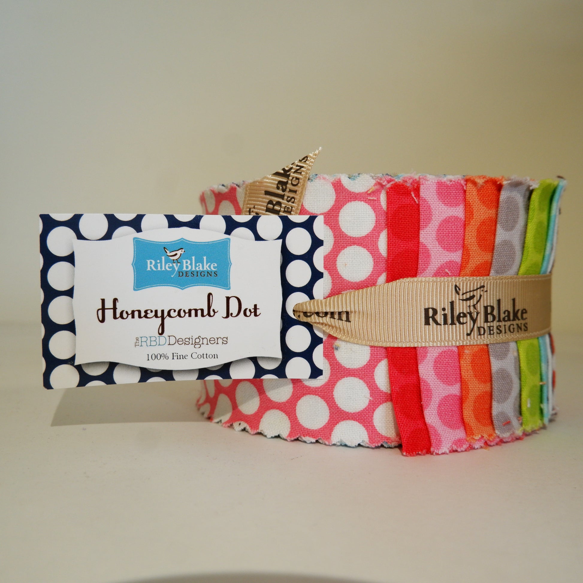 26 piece 2.5" strips of various colour ways in the Honeycomb Dot design for Riley Blake Fabrics
