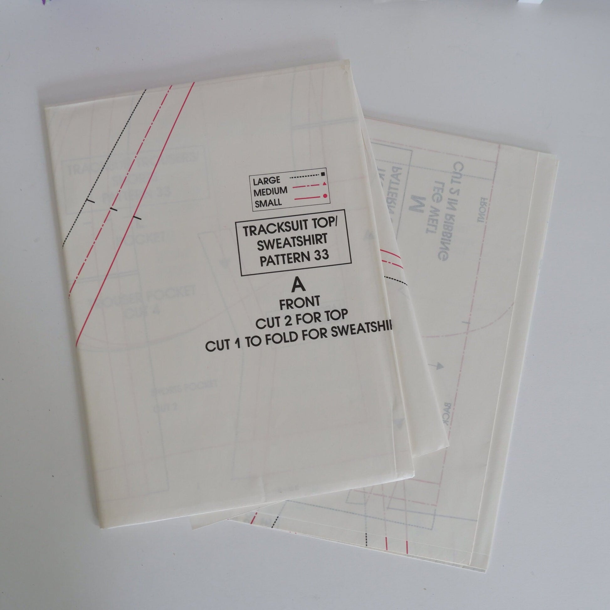 Cardigan-styled tracksuit top with ribbed fabric welt and cuffs. The pattern can be adapted for a top or cardigan with quilted shoulder padding detail.