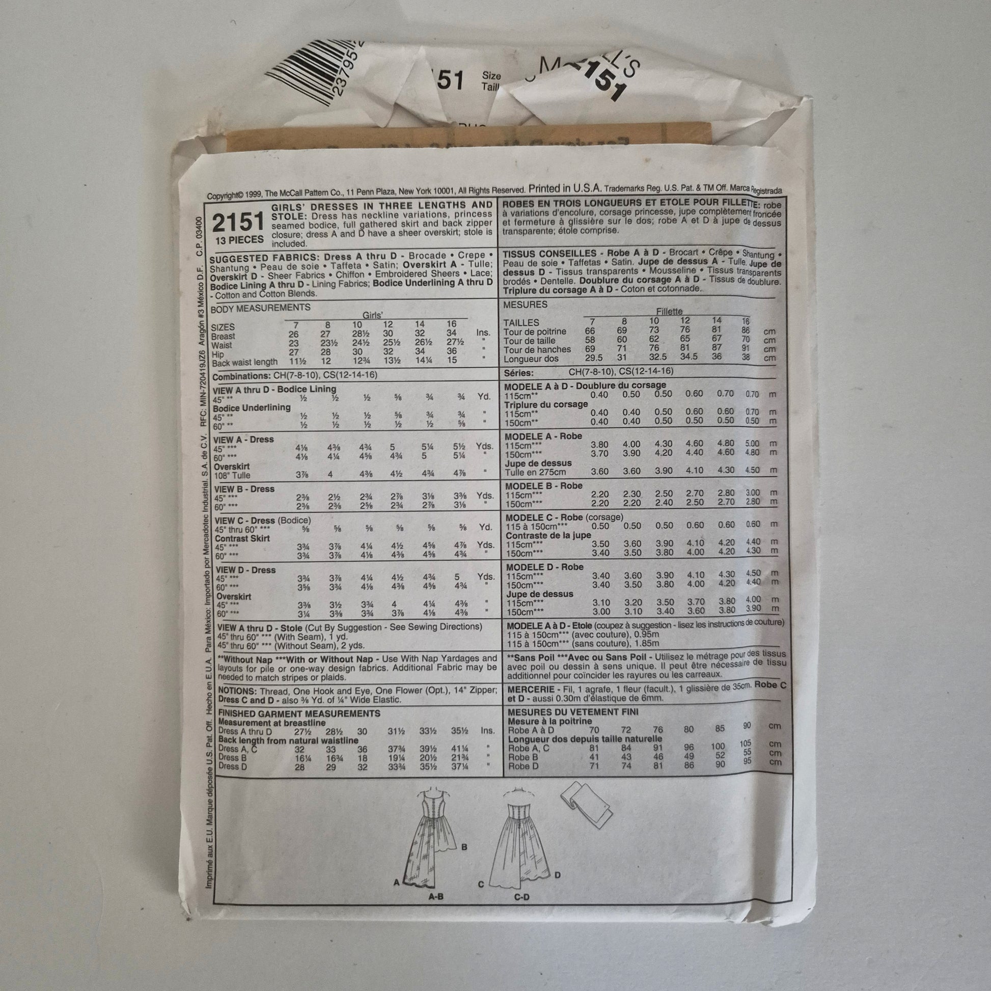 McCall's 2151, girls stole and dress pattern, size 7 to 10