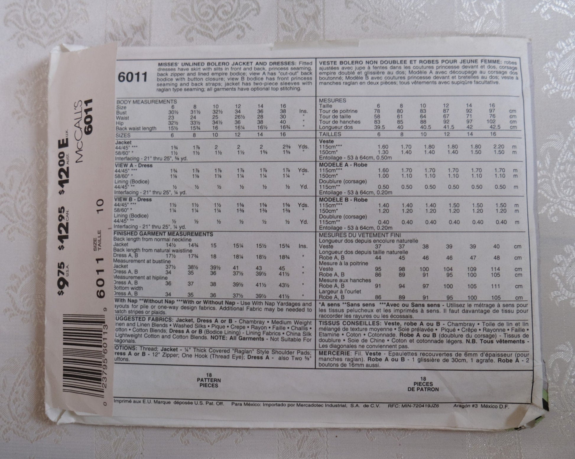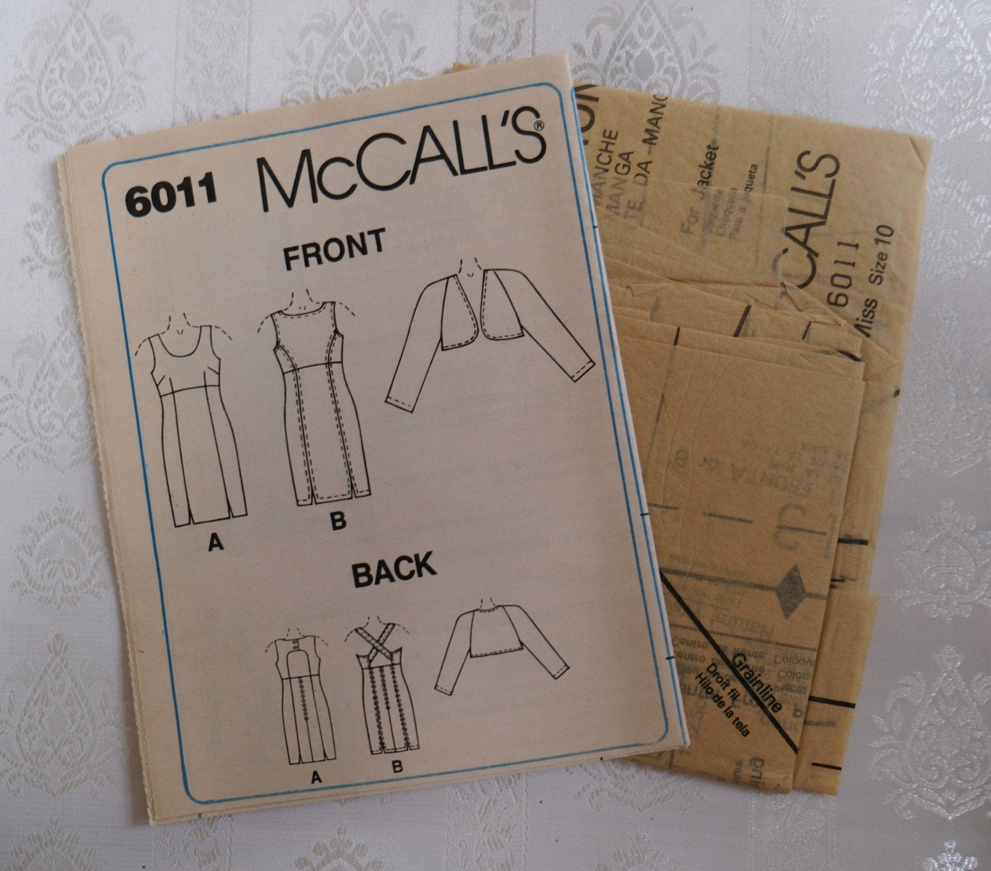 McCall's 6011 bolero jacket and dress pattern. NY NY Collection Size 10