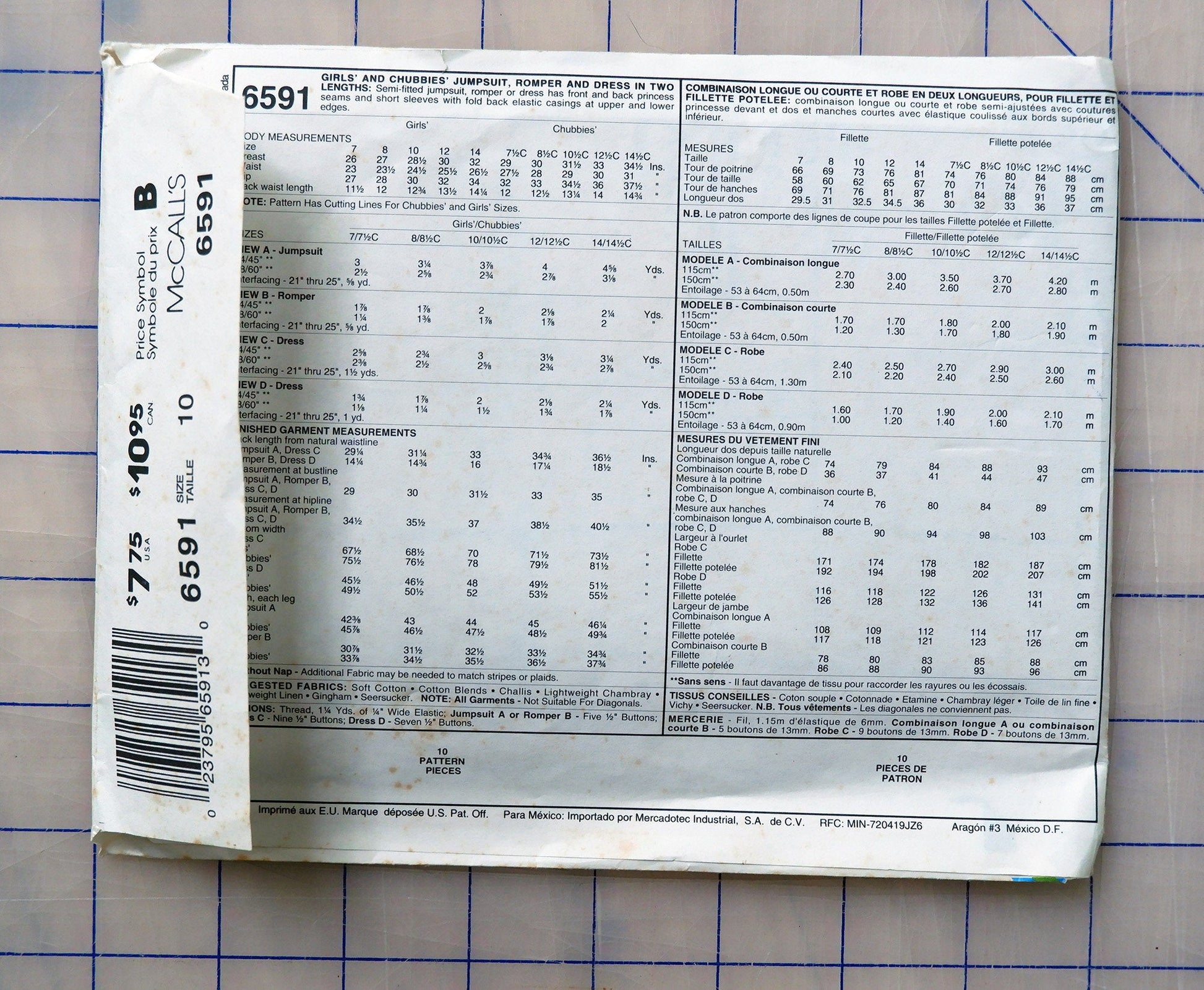 McCall's 6591 pattern, girls dress jumpsuit romper size 10