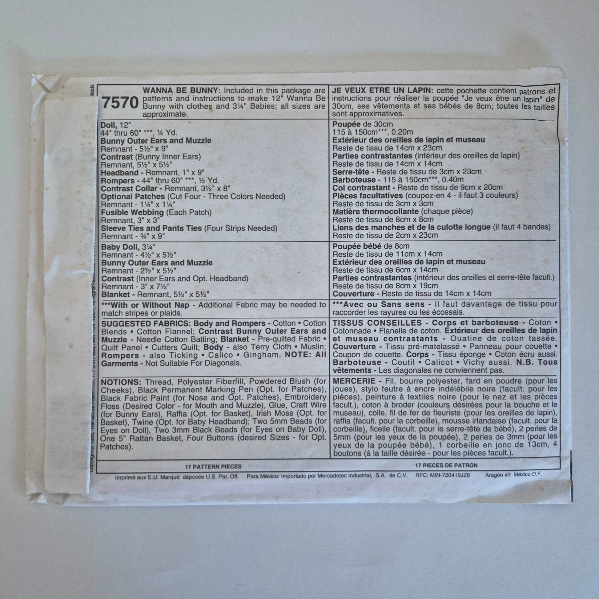 Wanna Be Bunny: Included in this package are patterns and instructions to make 12" Wanna Be Bunny with clothes and 3 1/4" Babies; all sizes are approximate.