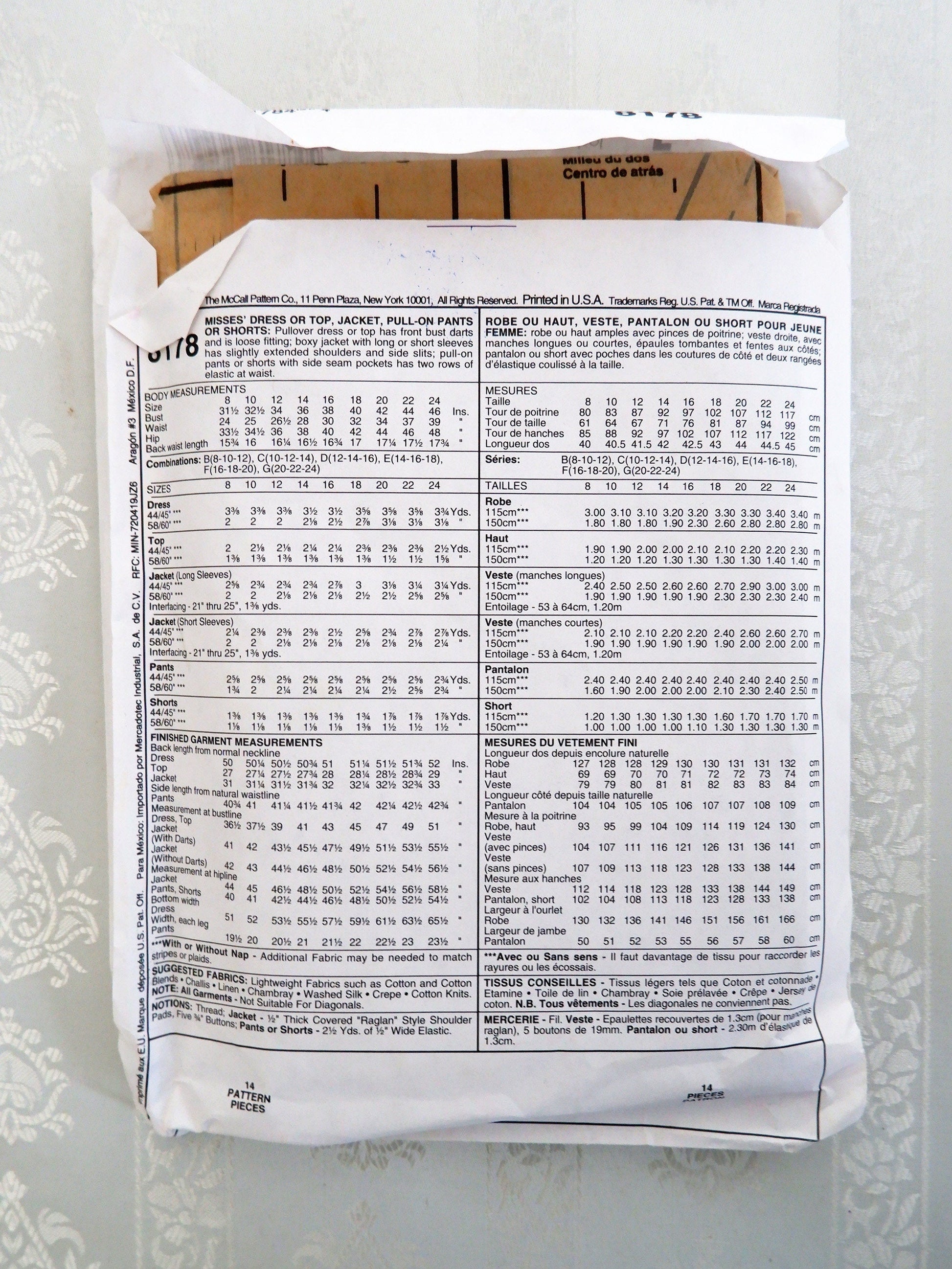 McCall's 8178, dress top jacket shorts and pull-on pants pattern, sizes 14 - 18
