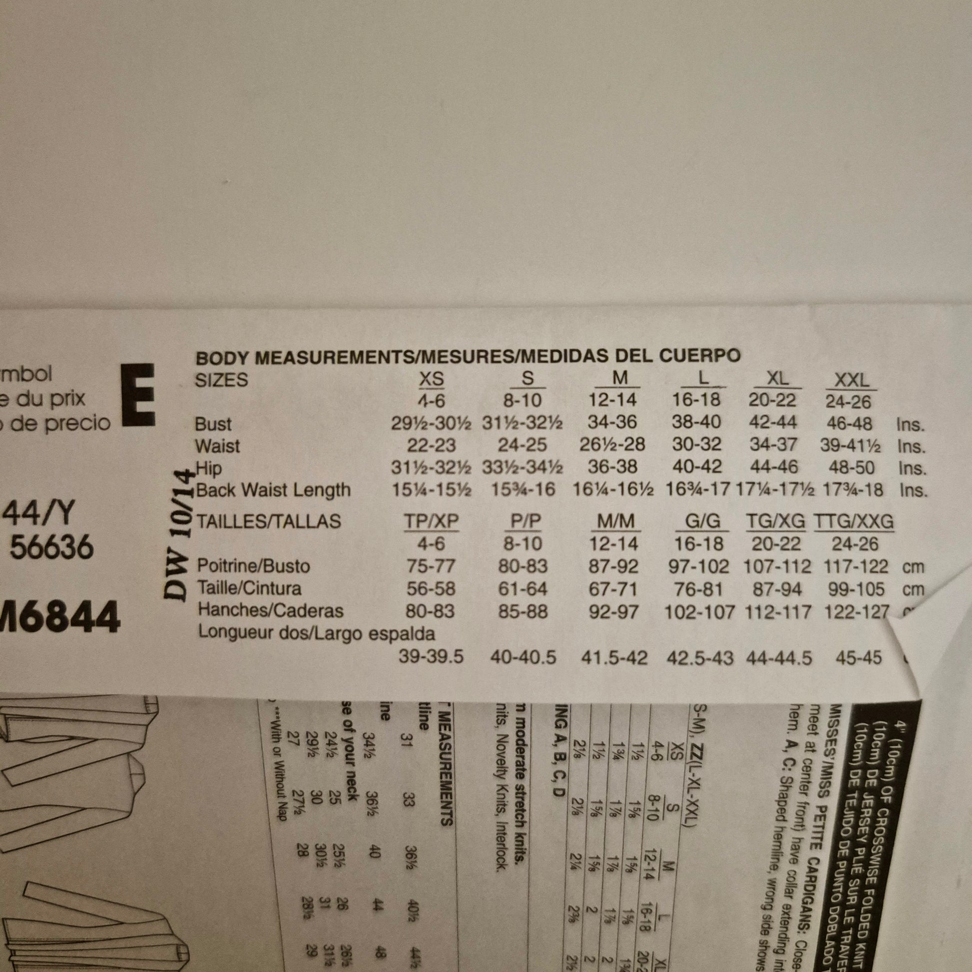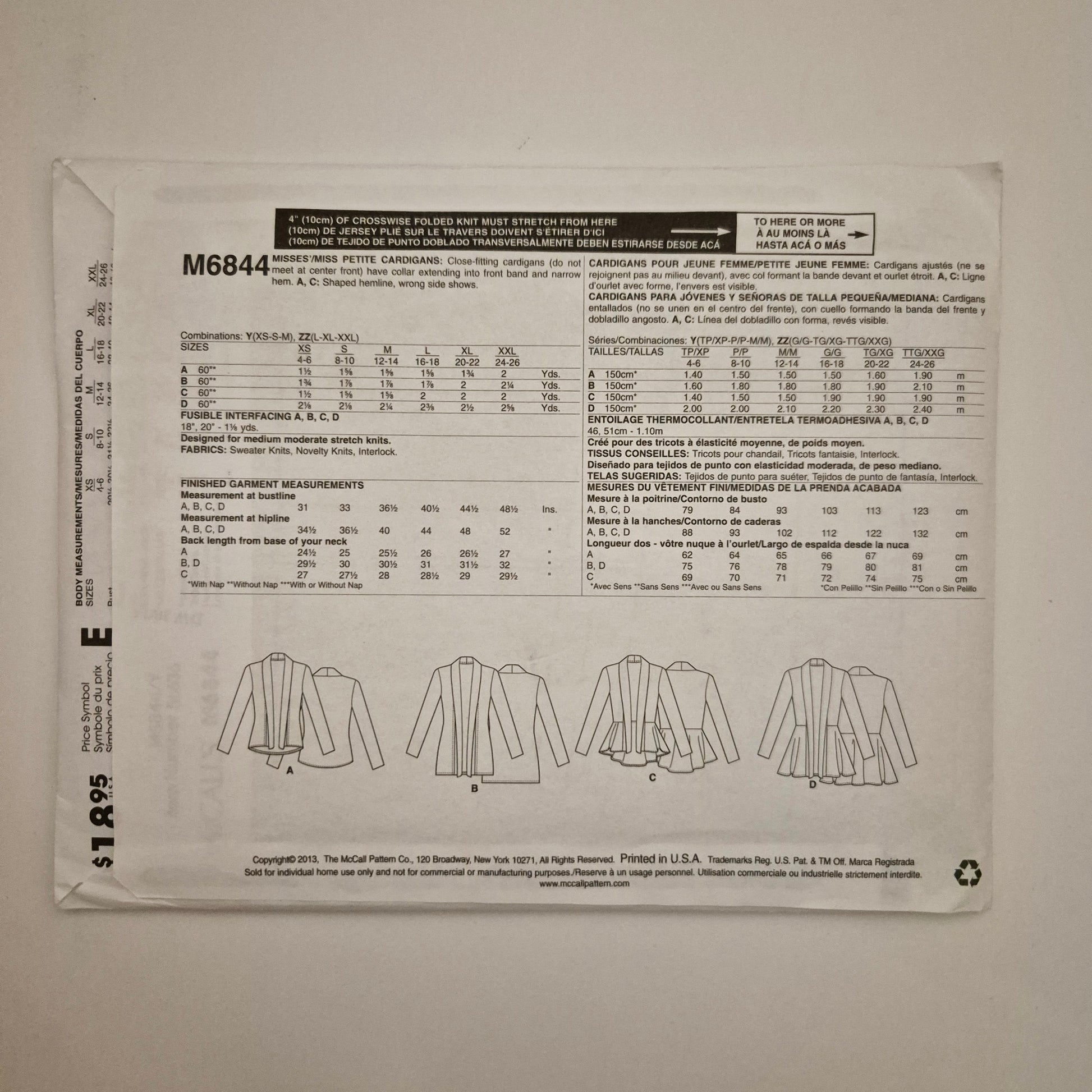 McCall's M6844, cardigan pattern, sizes XS to M, 4 - 14