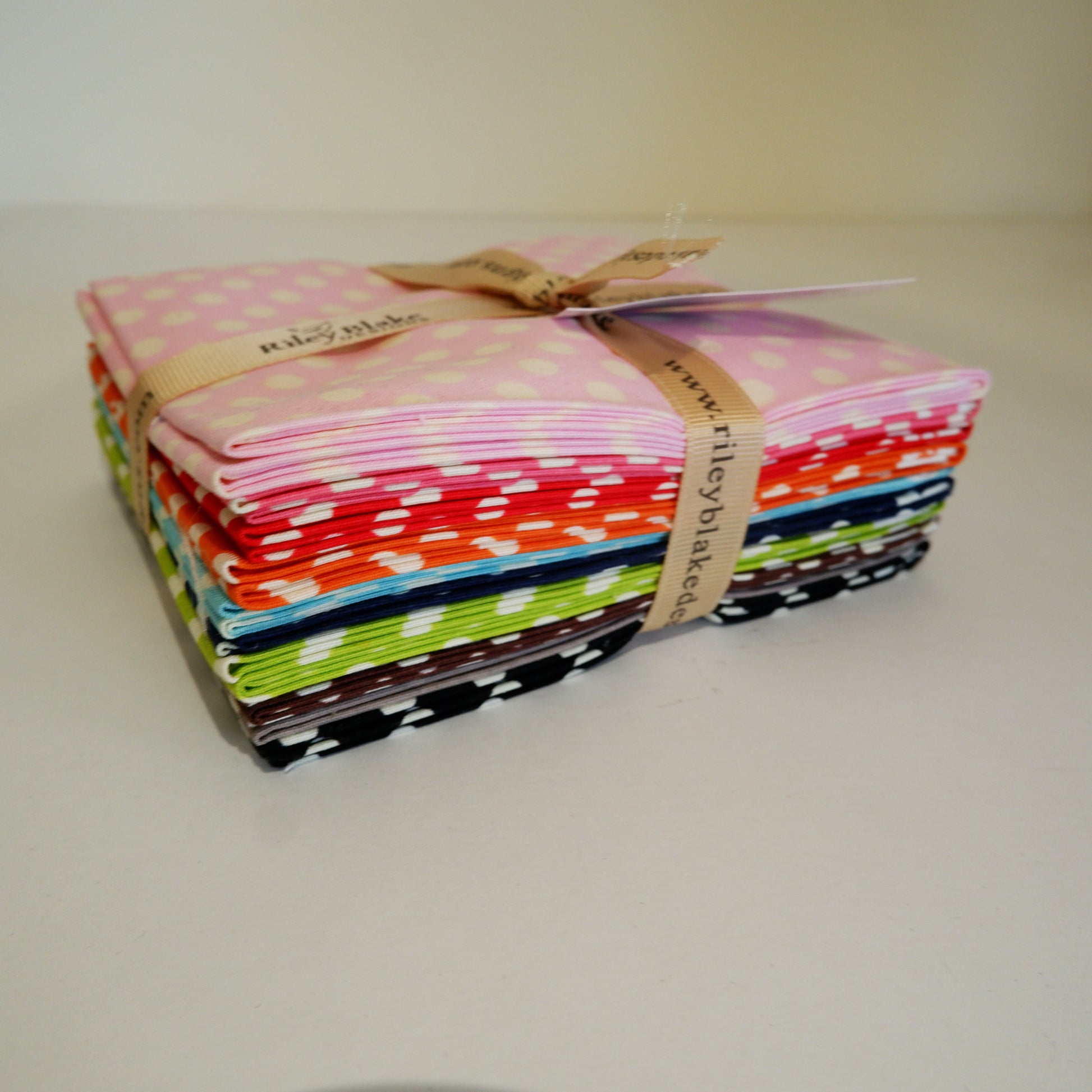 10 fat quarters of various colour ways in the Small Dot design of the Le Creme Basics range from Riley Blake Fabrics.