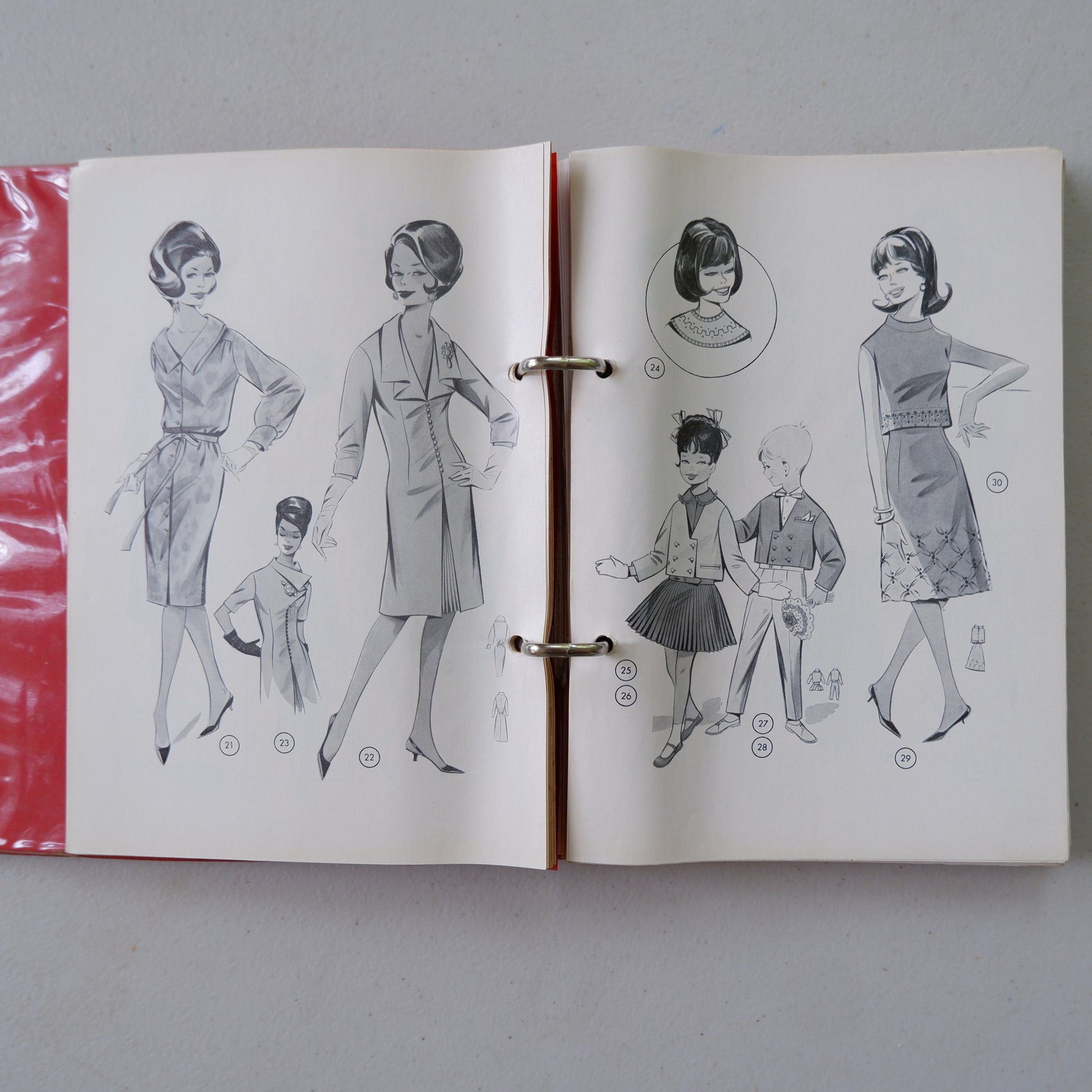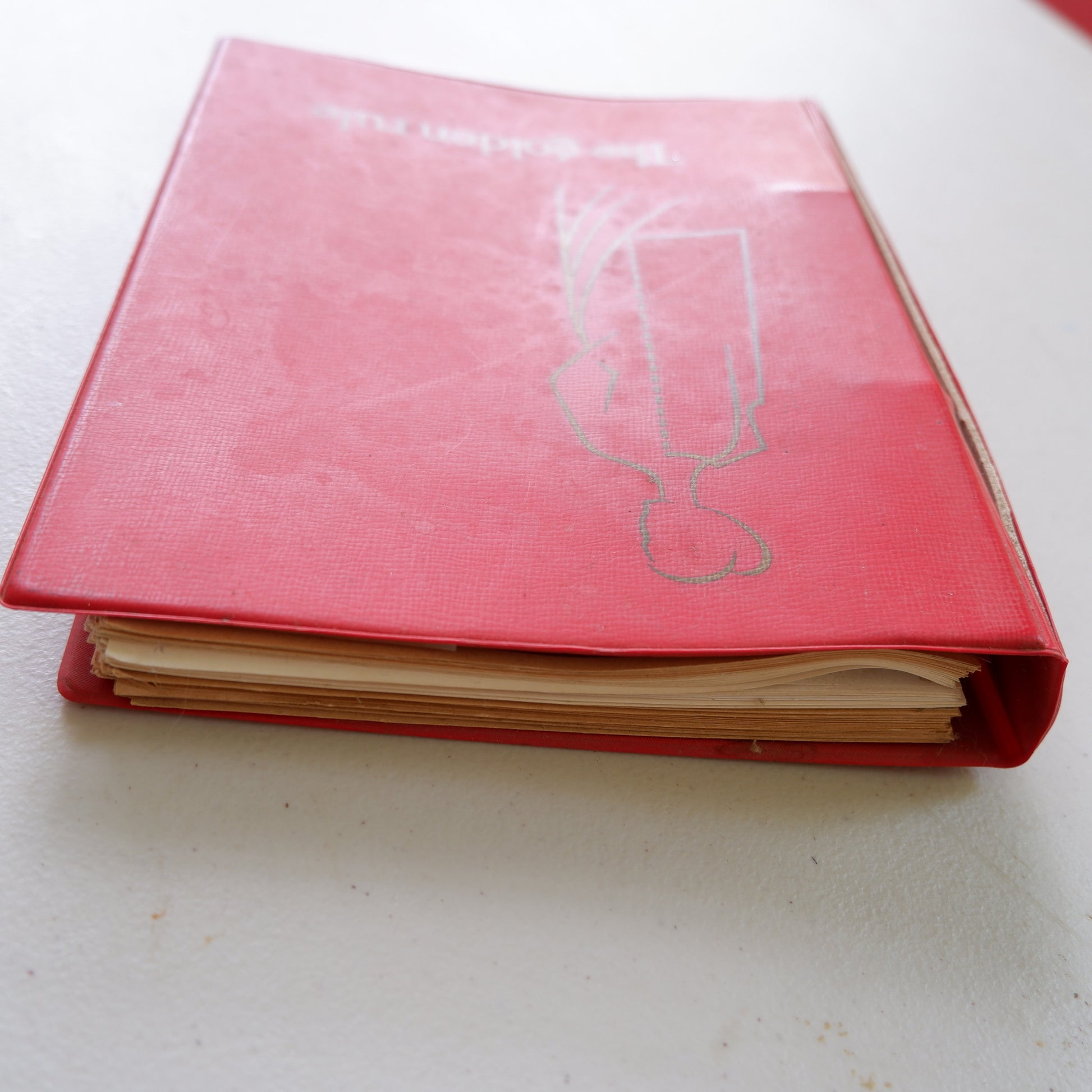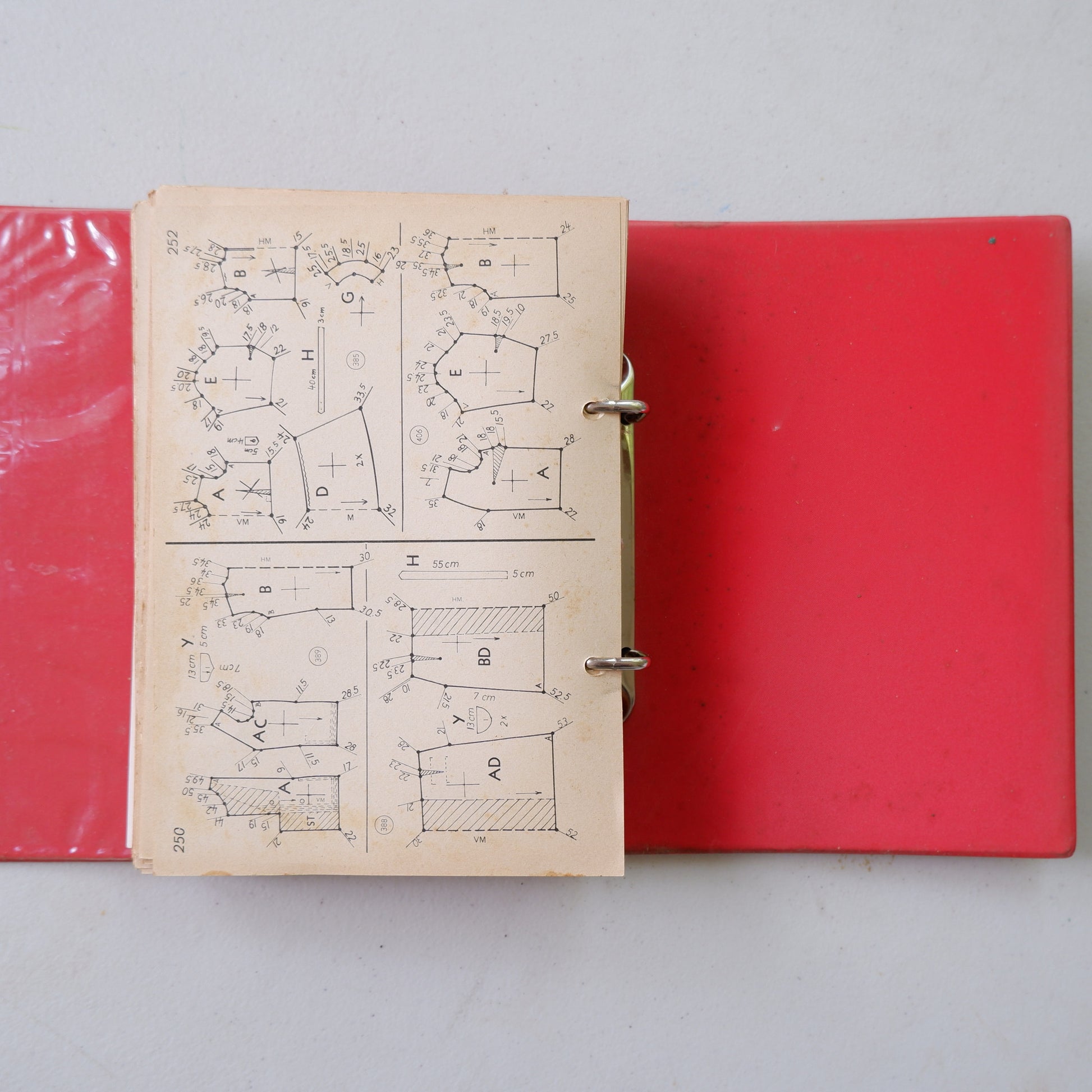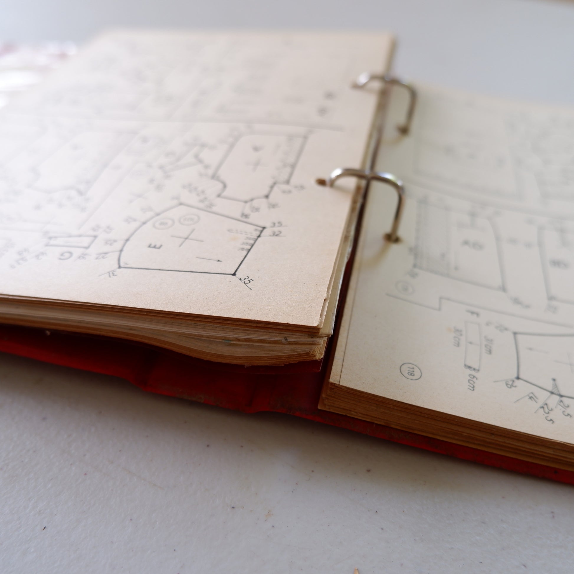 There is some age wear and tear, see photos of slight damage to the ring binder, pages not 100% flat, and age spotting on the text pages. A few pages have tape along the inside edge to stop ripping through the binder rings.